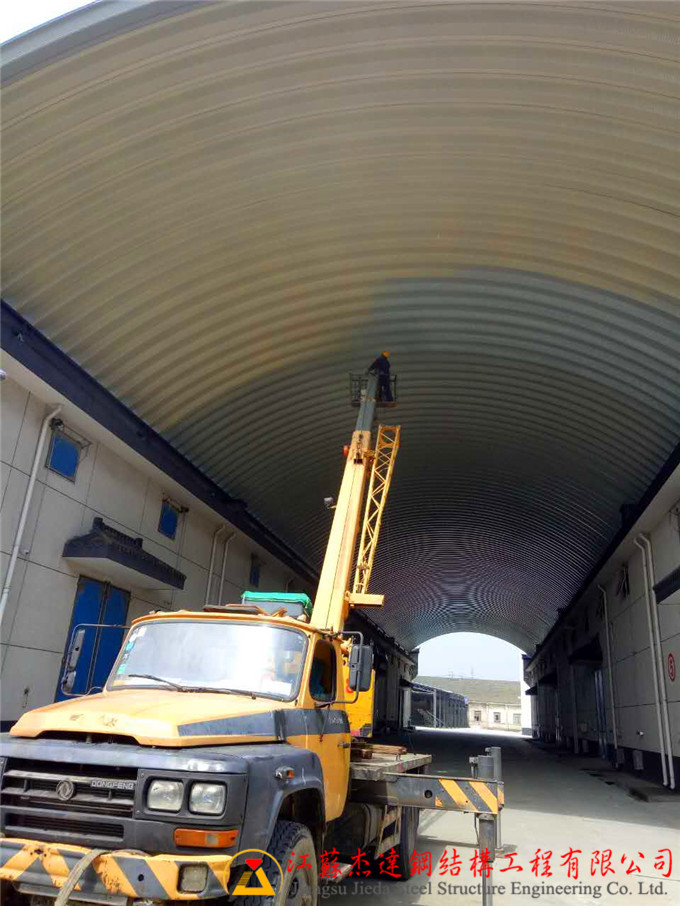 拱形屋頂因其結構特點,在一些工業建筑中需要進行防腐處理以延長使用壽命。本文介紹了江蘇杰達鋼結構工程有限公司在拱形屋頂背面噴涂防腐油漆的施工工藝及相關操作流程。
