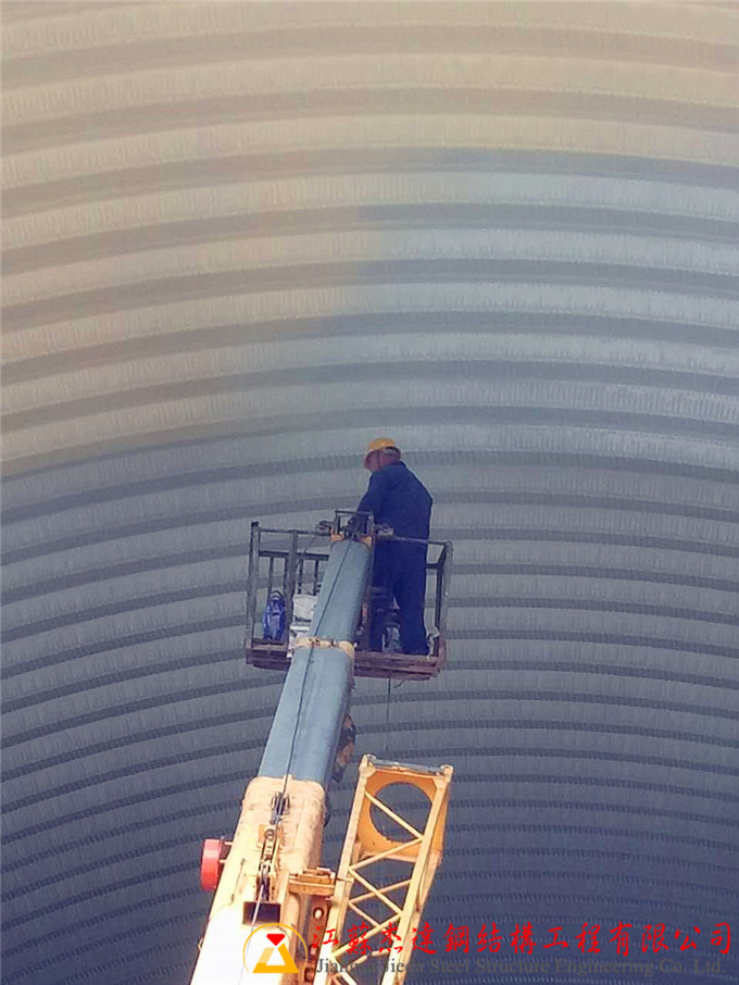 部分業主,尤其是化工業主,通常會要求對拱形屋頂的背面進行防腐油漆噴涂,以保護鋼結構免受腐蝕影響。一般情況下,防腐油漆由業主提供,施工方則以清包工的方式負責噴涂工作,確保施工質量符合使用需求。